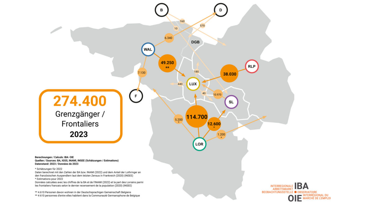 Plus de 274.000 personnes dans la Grande Région bénéficient des opportunités du marché du travail transfrontalier et traversent la frontière pour se rendre sur leur lieu de travail. Les raisons à cela peuvent être très diverses. Pour certains, il est difficile de trouver un emploi adéquat dans leur propre pays, pour d’autres, une offre d’emploi intéressante les a attirés dans le pays voisin, ou bien la volonté d’élargir leurs compétences professionnelles et linguistiques ainsi que d’améliorer leurs perspectives de carrière. Quelle que soit votre motivation, saisissez les opportunités que vous offre le marché transfrontalier de l’emploi dans la Grande Région !